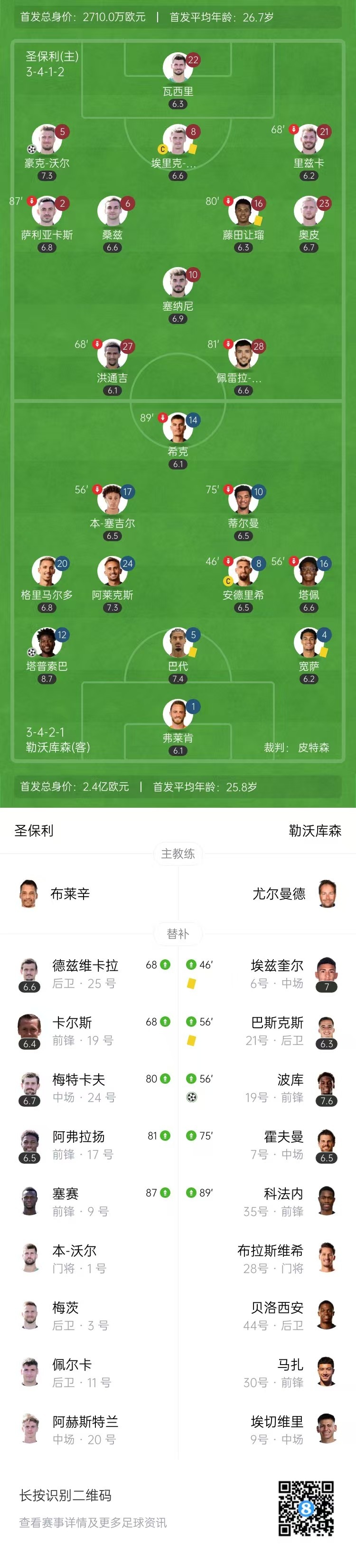 第53分钟,圣保利左侧角球直接开到后点,后点的凌空低射被门将扑出底线。↓