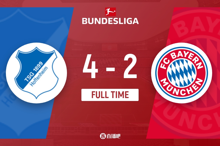全场比赛结束,最终拜仁2-4霍芬海姆。