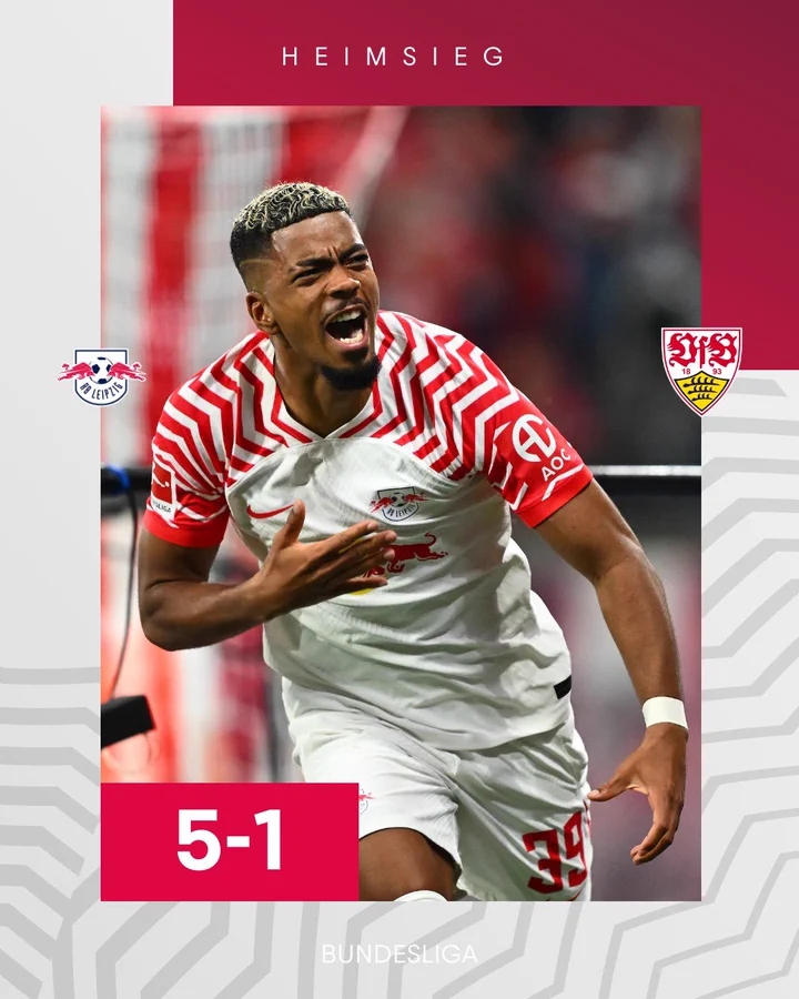 德甲-西蒙斯2传1射,莱比锡5-1逆转斯图加特