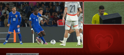 第45分钟,马库斯-图拉姆造点,姆巴佩操刀点射命中,法国1-1