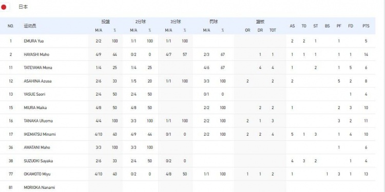 韩旭18分10板9助、张敬一21分2板、宋珂昕20分2板3助3断、刘禹彤16分4板、李双菲6分10板、李一凡7分、苏源圆2分5助、唐子婷9分7板4助、贾赛琪0分6板3助