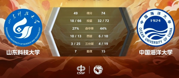 中国海洋大学:王钊琦21分3篮板、周姿含14分8篮板7助攻、吕俏霖11分3篮板、付靖文10分3篮板、代静娴4分、豆佳慧2分6篮板3助攻、李依坤2分2篮板。