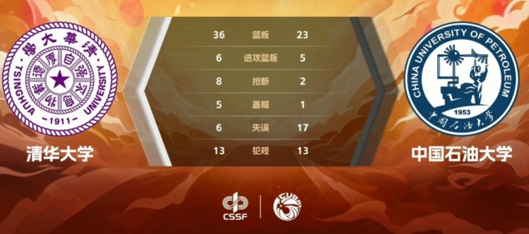 巨大分差也让末节成为练兵时间,但清华大学这边郑君豪上来又是连续三分进球,清华大学送上一波14-2的攻势继续扩大领先,中国石大没能制造任何威胁前7分钟仅得4分,末段靠着汤答连续拿分破荒拿分。最终,清华大学大胜中国石油大学顺利晋级。