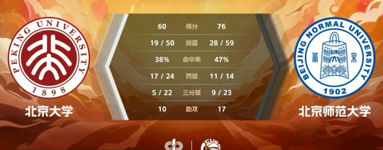 末节比赛,北师大连投带罚将分差拉开到30分以上,北大连得5分苦苦追赶,北师大稳扎稳打保持优势,伍湘琳抢断反击轰进追身三分,北大冲击篮筐连投带罚延续希望,无奈之前挖坑太大,最终,北师大76-60轻取北大。