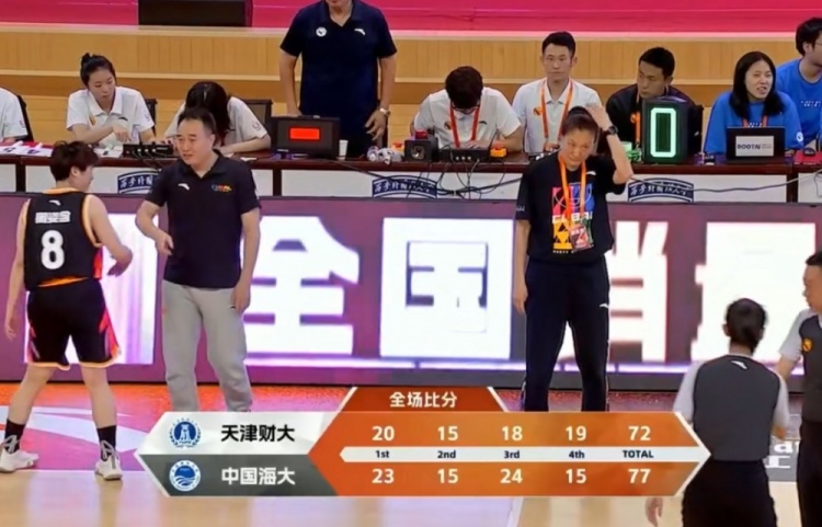 末节决战,双方上来连续打铁,李依坤和张雨倩连续三分命中,中国海大一波8-0领先到17分,但王露曦站出来连续4记三分回应,天津财大轰出13-0进攻波追到差2分,周姿含关键三分止颓势稳局势,陈雨欣接连三分不中,最终中国海大77-72力克天津财大。