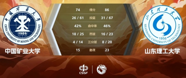末节决胜双方势均力敌一直拉锯,中国矿大几次尝试推快节奏蚕食分差但无法限制对手导致局面一直被动,而末段的连续失误也直接导致局面越发被动,王虹虽然连续错失罚球但两度助攻队友得分外加随后两次篮下打成,山东理工重新拉开两位数优势奠定胜局。最终,山东理工大学86-74力克中国矿业大学拿下比赛。