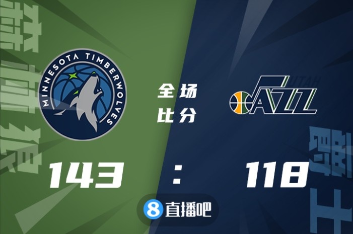 比赛上来,两队就展开对攻大战,场上比分交替领先,进入次节双方的攻势更加凶猛,但明显森林狼占据了上风,单节狂轰44分的他们将分差拉开到了两位数,半场结束时爵士落后10分;进入下半场爵士的命中率急剧下滑,而森林狼则继续保持着自己的高命中率,分差直接逼近三十分,末节爵士也没有再获得任何机会,比赛早早就失去了悬念,最终森林狼143-118大胜爵士,送给后者三连败。