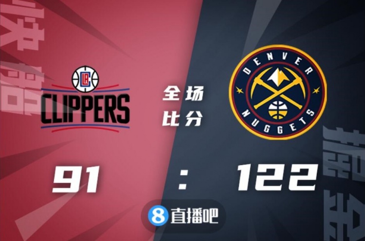 比赛开始,掘金利用主场优势率先发力,很快取得两位数领先,快船全队低迷,掘金攻防两端压制对手,在次节初段就将分差拉开到20分以上。快船毫无起色,掘金则全民皆兵越战越勇,半场打完掘金66-32领先34分。易边再战,掘金牢牢占据场上主动,连投带罚将分差拉开到40分以上,过大的分差让比赛早早失去悬念,最终,掘金122-91大胜快船,送给对手4连败。