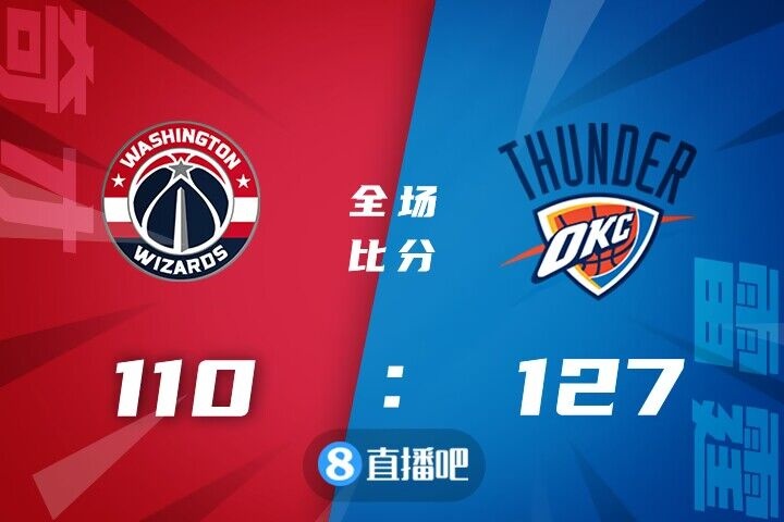 比赛开打后两队你来我往火热对攻,中段奇才进攻陷入停滞,雷霆延续火力打出14-2小高潮,末段雷霆乘胜追击继续扩大优势,首节结束时雷霆已经领先18分,次节回来,奇才进攻依然滞涩追分乏力,雷霆则稳扎稳打牢牢占优,半场战罢,雷霆将分差拉开到26分。易边再战后波尔津吉斯连续杀伤率队追分,但亚历山大里突外投总能及时回应,末段两队延续火力继续对攻,三节结束后雷霆依然领先23分,末节上来,奇才突然发力回敬14-2攻击波,多特联手亚历山大稳住局势,末段奇才延续追分势头,无奈双方分差过大追分未果,最终雷霆127-110击败对手。