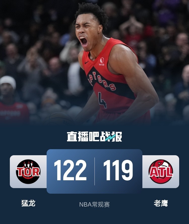 🏀巴恩斯25+6 特雷-杨18+13 丹尼尔斯22+8+5 猛龙6人15+胜老鹰