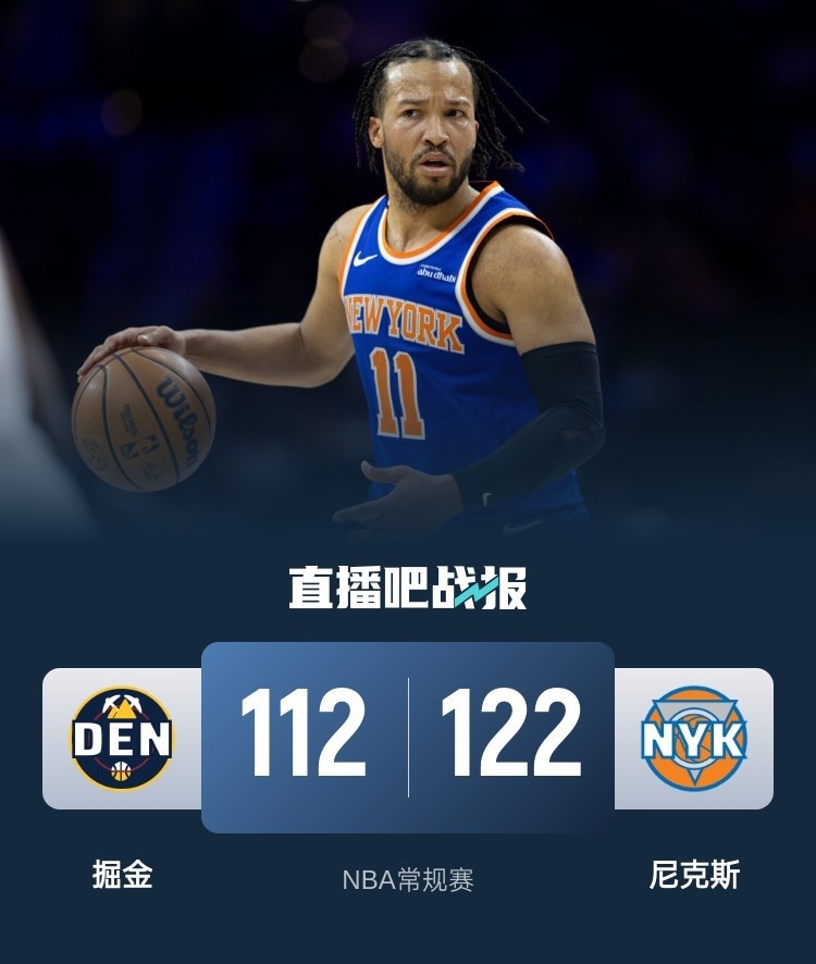 🏀布伦森30+15 约基奇17+6+6 穆雷33+5+6 尼克斯送掘金3连败