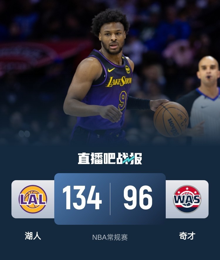 🏀詹姆斯24+11 布朗尼5分2板2助 湖人38分大胜送奇才16连败!