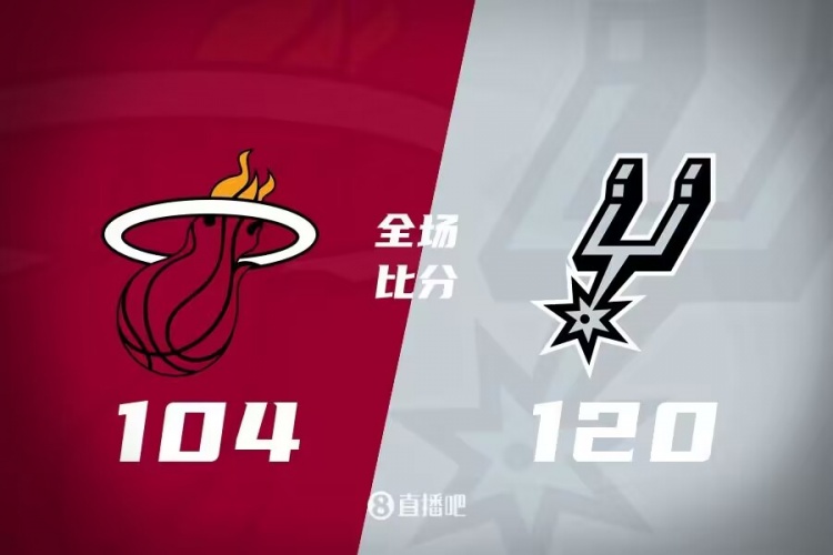 比赛开始,马刺率先发力,文班连中两球带队打出9-0的开局,热火内外开花迅速迫近比分,海史密斯飙中三分帮助球队完成8-2的攻势反超,此后双方展开拉锯战,比分交替领先,凯恩高效输出,文班亚马和瓦塞尔联手带队强势回应,半场战罢马刺59-56领先3分。易边再战,双方依旧势均力敌,比分咬得很紧,末节马刺占得先机连中三分确立两位数优势,热火多点开花顽强咬住,关键时刻马刺一波8-0杀死比赛。最终,马刺120-104击败热火,取得胜利。