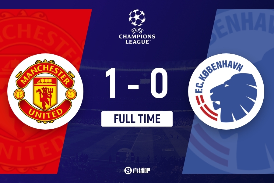 下半场伤停补时4分钟,全场比赛结束,最终曼联1-0哥本哈根。