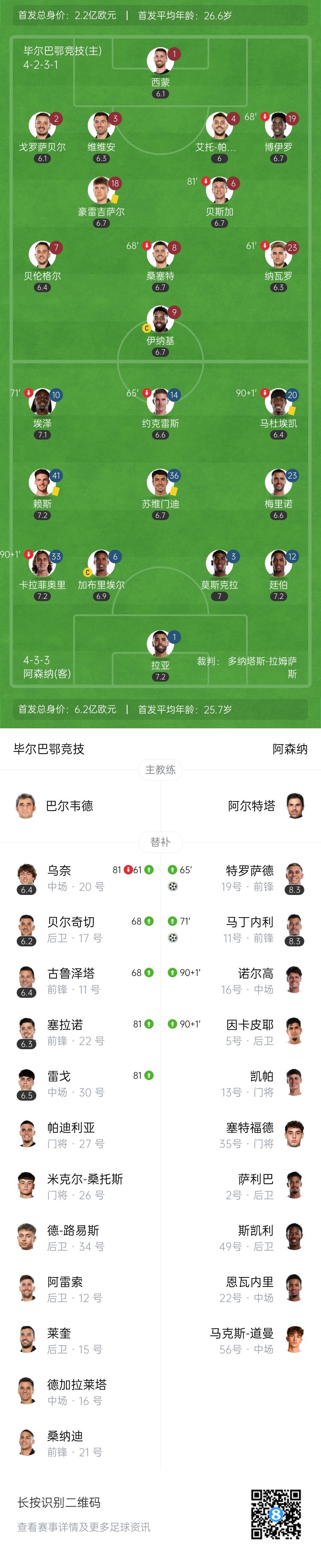 第87分钟,马丁内利左路突破下底,倒三角传到小禁区前,特罗萨德调整后右脚打门!两名替补登场的球员双双传射建功!阿森纳2-0领先毕尔巴鄂竞技↓