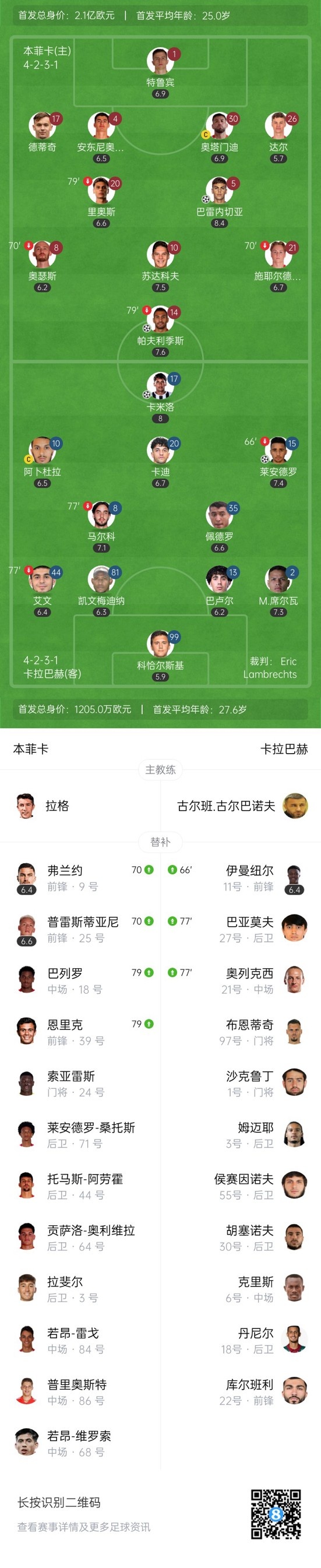 爆冷!本菲卡2-3卡拉巴赫无缘开门红 卡拉巴赫让二追三翻盘