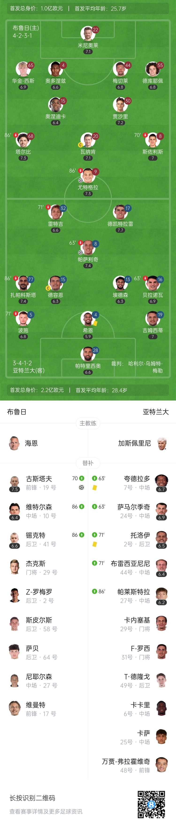 第90+4分钟,尼尔森亲自主罚点球命中!布鲁日2-1绝杀亚特兰大↓
