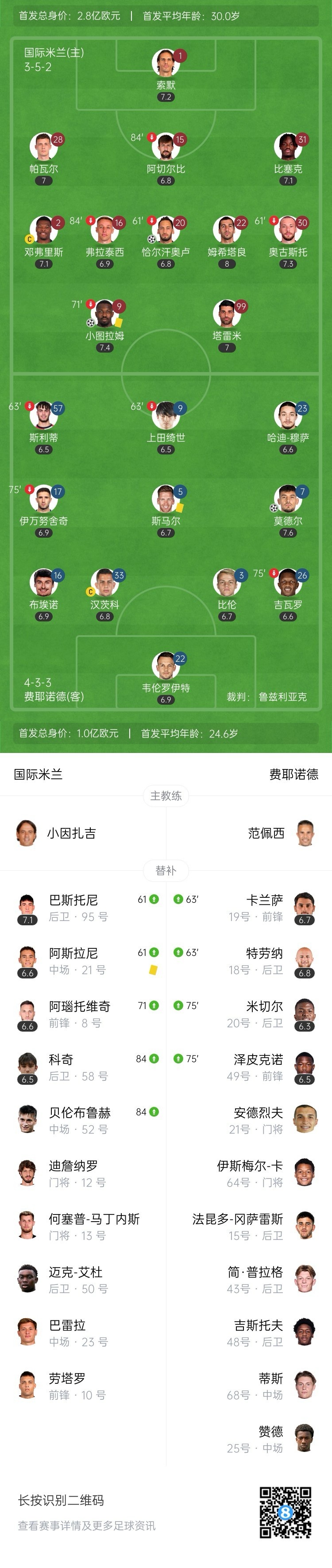 双杀!国米2-1总比分4-1费耶诺德晋级将战拜仁 图拉姆恰20破门