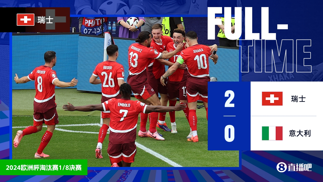 卫冕冠军出局!意大利0-2瑞士 瑞士连续2届晋8强 意大利攻防糟糕