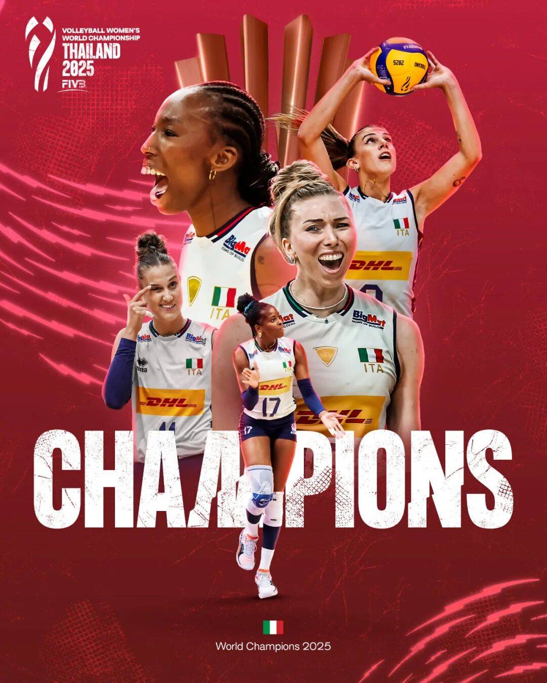 这支意大利女排在过去一年多的时间里,先后摘下2024年VNL世界女排联赛冠军、2024年巴黎奥运会冠军、2025年VNL世界女排联赛冠军,如今再添世锦赛桂冠。36场国际比赛连胜、三大国际赛事“金牌三连”,让意大利女排成为继2002年古巴女排之后,手握奥运冠军与世锦赛冠军的女排队伍,谱写了属于欧洲的传奇篇章。