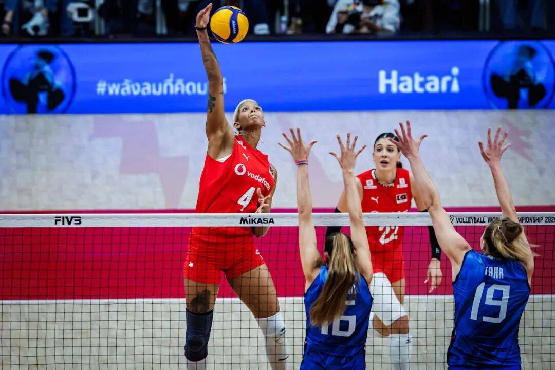两队开局打得难解难分,土耳其女排在发球(7-5)和扣球(68-59)环节略胜意大利队,但拦网(10-14)成为败局关键因素,两边都失误20分,赛况的转折点出现在决胜局后段,瓦尔加斯转至后排之后,球队弱点也暴露明显,被意大利队精准拦防,全部拦到崩溃。