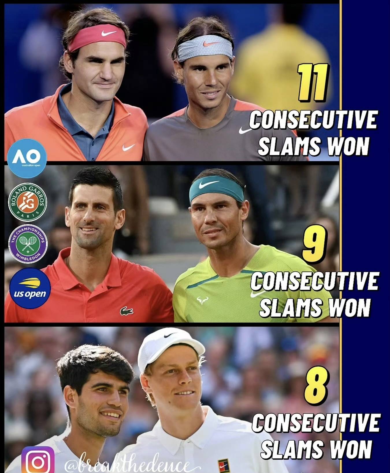 这种思维模式令人瞬间穿越回费德勒、纳达尔、德约科维奇三巨头共同定义网坛的黄金年代。他们之间每一次令人惊叹的进化都源于伟大对手的鞭策。