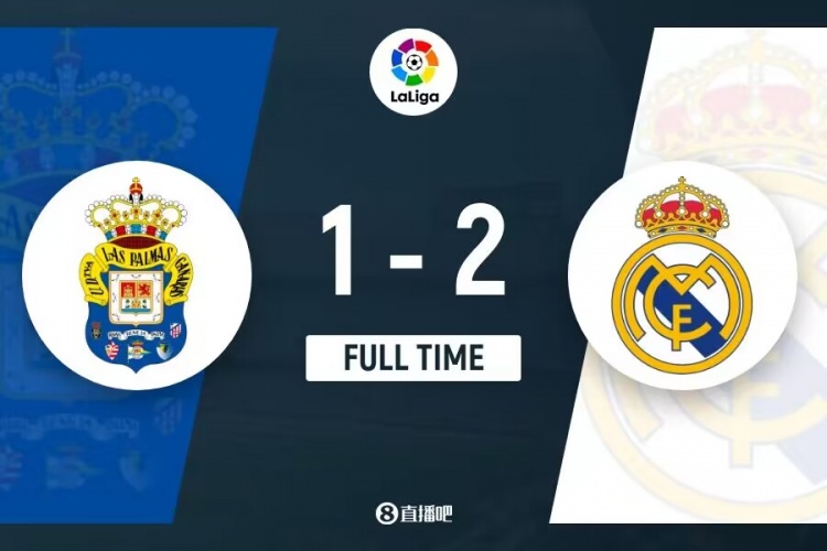 下半场伤停补时8分钟,全场比赛结束,最终皇马2-1拉斯帕尔马斯。