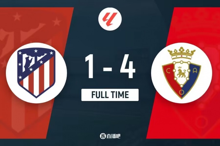 西甲-马竞1-4奥萨苏纳终结四连胜 马竞提前一轮锁定第四