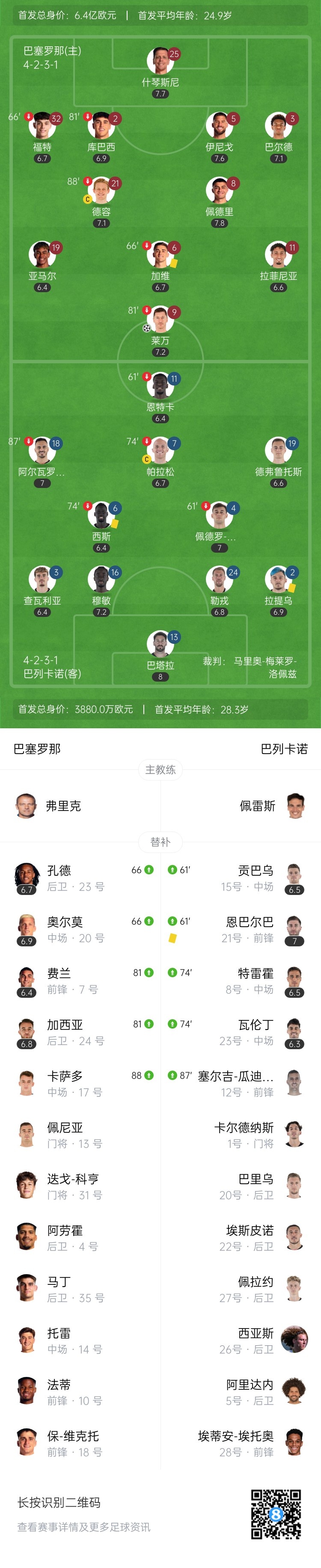 9月1日讯 西甲第3轮,巴列卡诺坐镇主场巴列卡斯球场迎战巴塞罗那。上半场,拉菲尼亚失良机,亚马尔造点并亲自主罚命中。易边再战,奥尔莫失良机,弗兰-洛佩斯替补建功,加西亚屡献神扑,巴列卡诺两球被吹,卡梅...发表于:09月01日