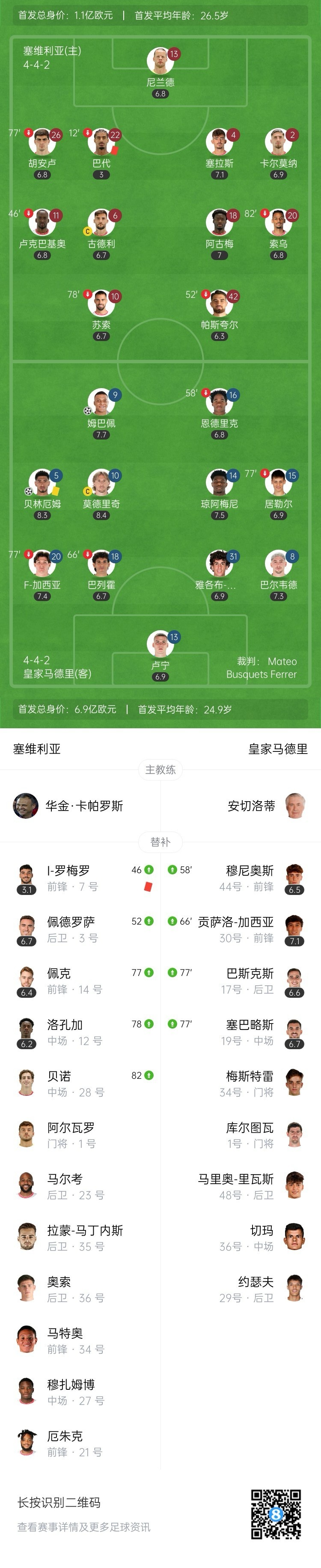 第60分钟,皇马禁区左侧下底倒三角回敲,巴尔韦德后点迎球起脚抽射,球被塞维利亚球员在门线前解围!↓