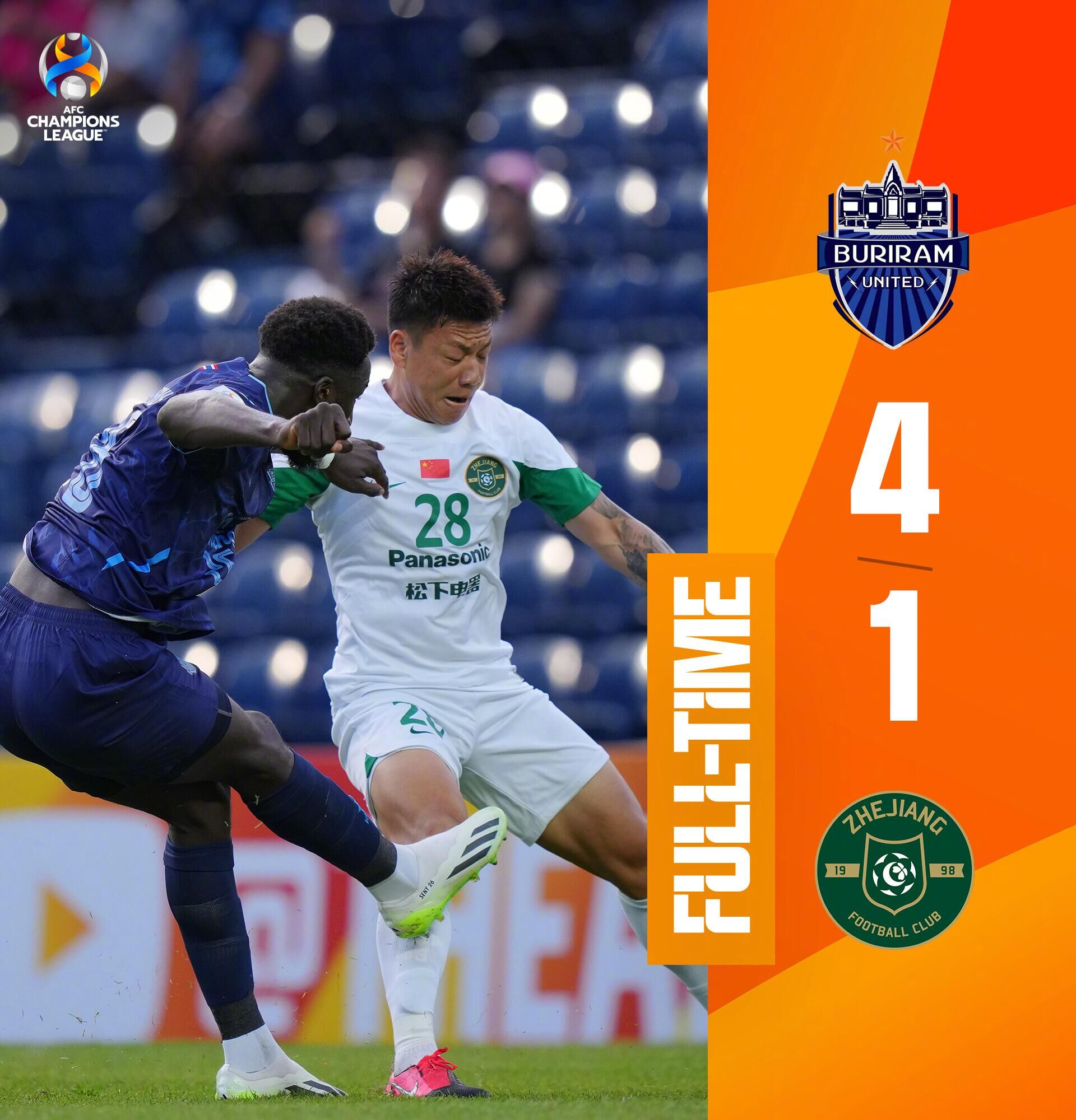 亚冠-浙江1-4武里南遭开门黑 浙江队4分钟连丢2球&后防梦游不回追