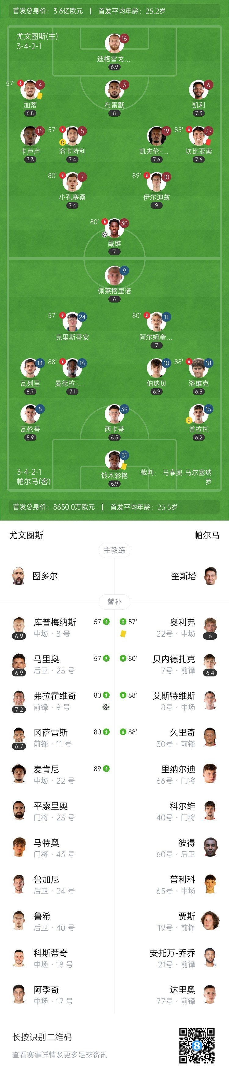 尤文2球领先!弗拉霍维奇替补破门,伊尔迪兹两送助攻!第84分钟,弗拉霍维奇做球发动反击,伊尔迪兹高速推进后横传,弗拉霍维奇跟进推射破门,尤文2-0帕尔马!↓
