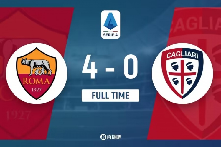 意甲-罗马4-0大胜卡利亚里距前四1分 穆帅下课后红狼联赛3连胜