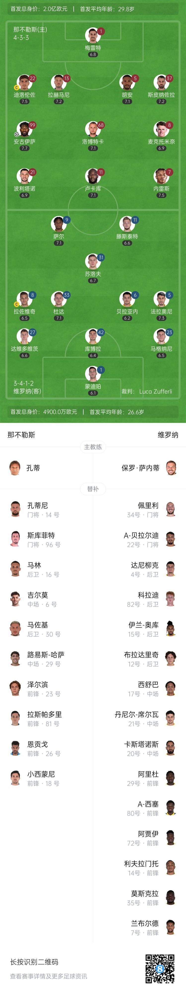 9月23日讯 意甲第4轮,那不勒斯坐镇主场马拉多纳球场迎战比萨。上半场,埃尔马斯破门被吹,吉尔莫先拔头筹。易边再战,别克马送点恩佐拉点射扳平,斯皮纳佐拉贴地斩破门,卢卡再下一城,罗兰建功。最终那不勒斯3...发表于:09月23日