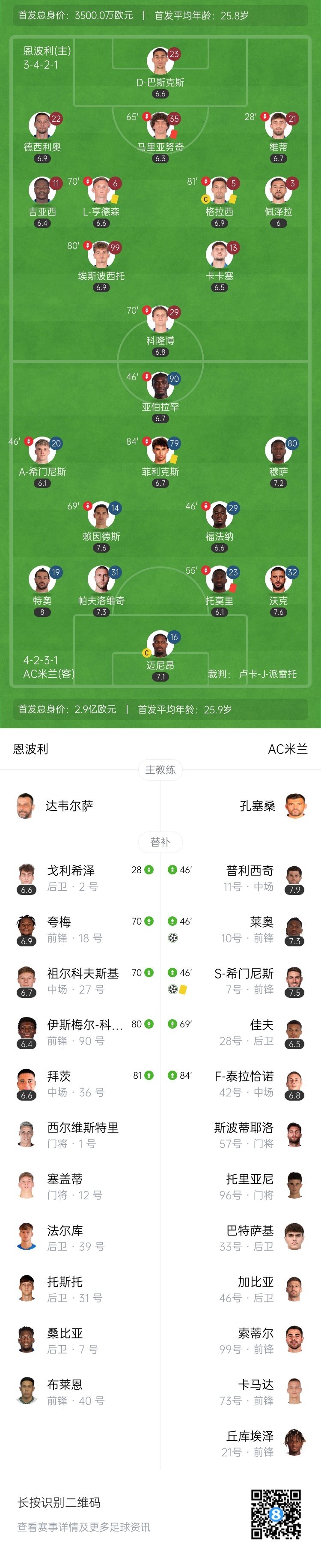 半场结束,AC米兰暂0-0恩波利。