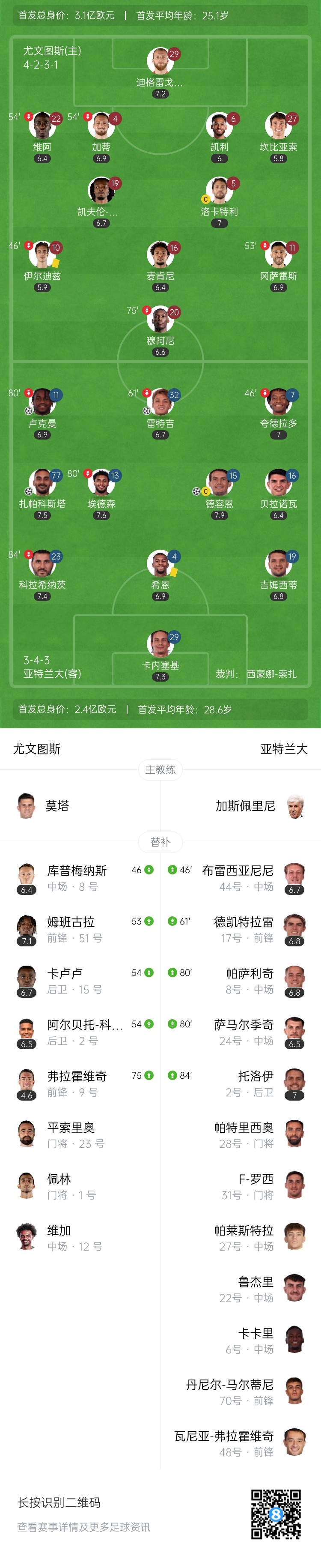 惨败!尤文0-4亚特兰大五连胜终结 麦肯尼送点弗拉霍维奇替补送礼