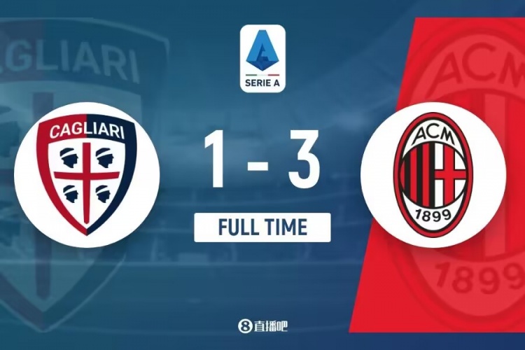 全场比赛结束,AC米兰3-1卡利亚里。