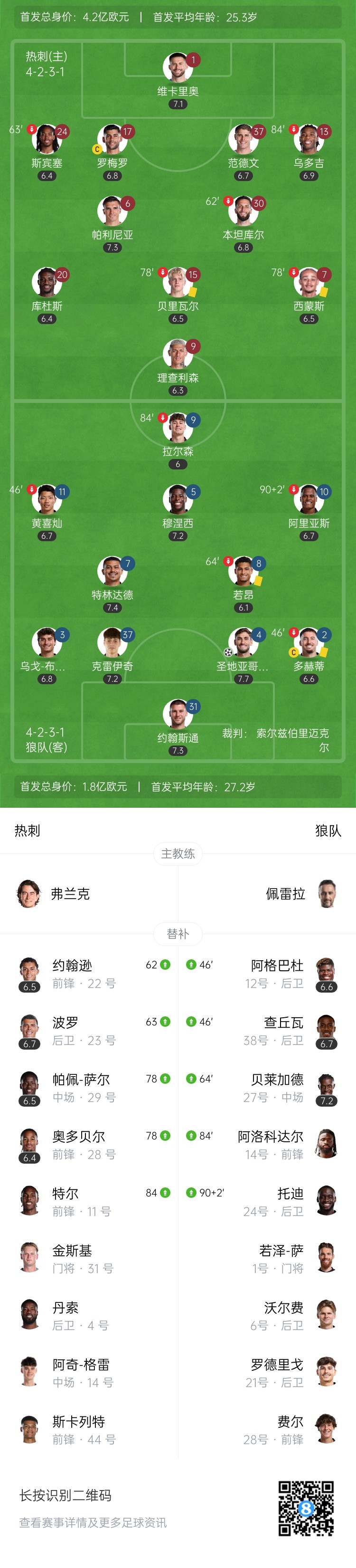 【双方首发及换人信息】