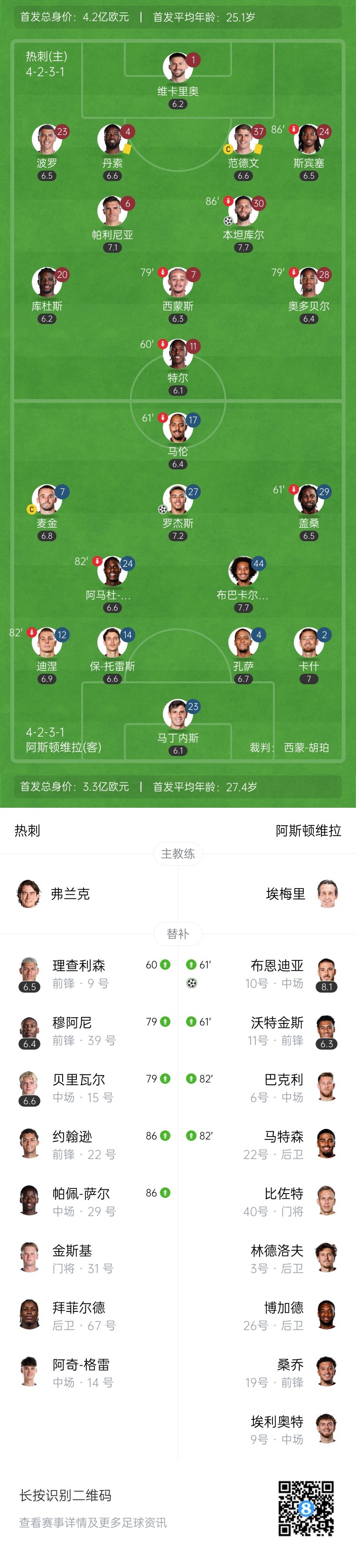 第5分钟,热刺左路传中,皮球来到后点,帕利尼亚头球摆渡,本坦库尔抽射破门!热刺1-0领先维拉↓