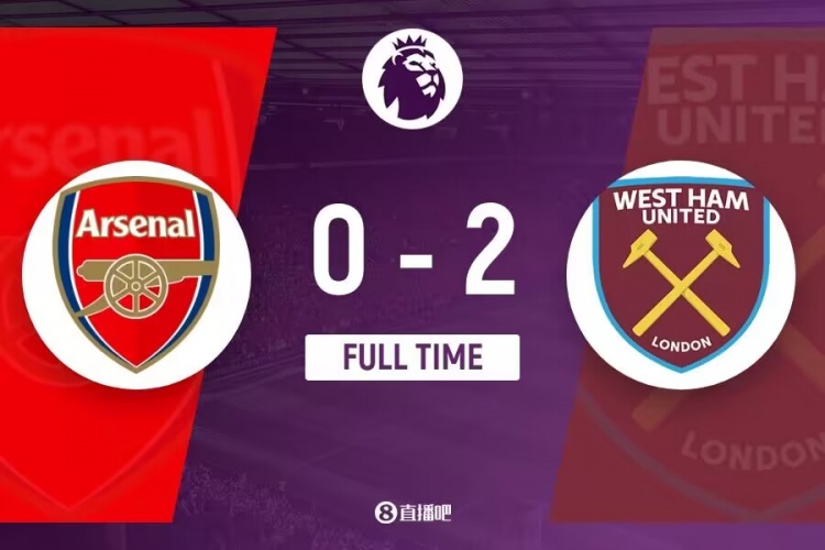 英超-阿森纳0-2西汉姆距榜首2分 枪手狂轰30脚无果近4轮仅1胜