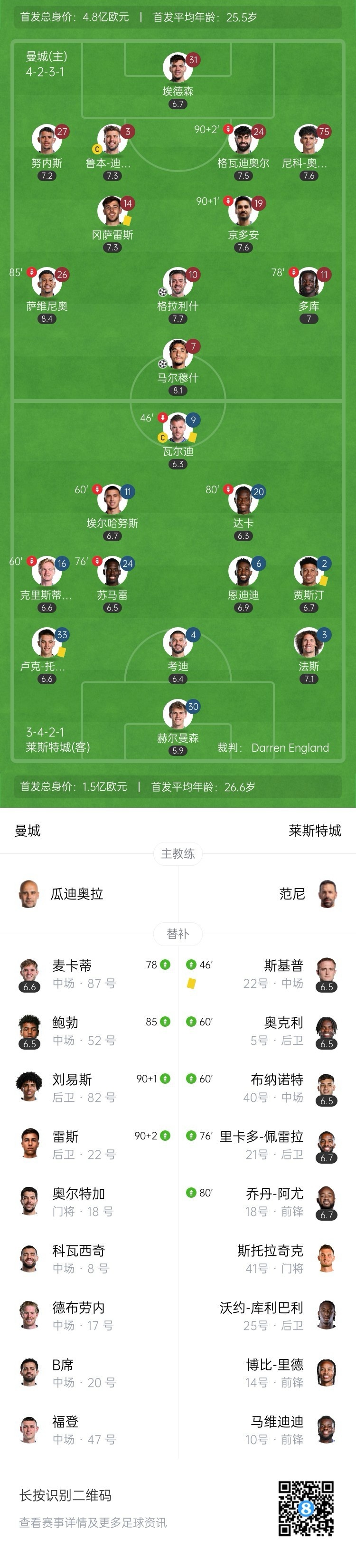 先赛升第四!曼城2-0莱斯特城 格拉利什闪击马尔穆什破门