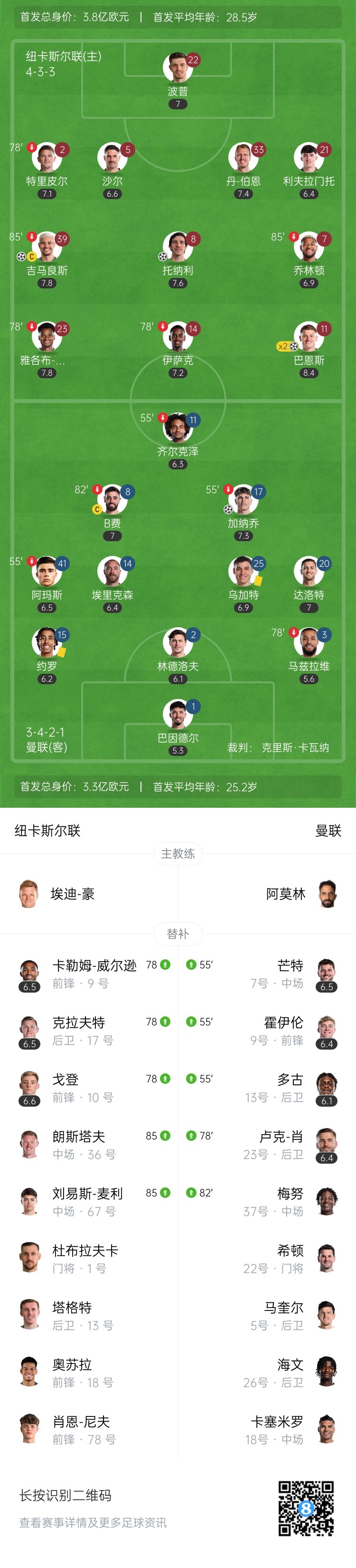 3轮不胜!曼联1-4送纽卡升第4 马兹拉维巴因德尔送礼齐尔克泽伤退