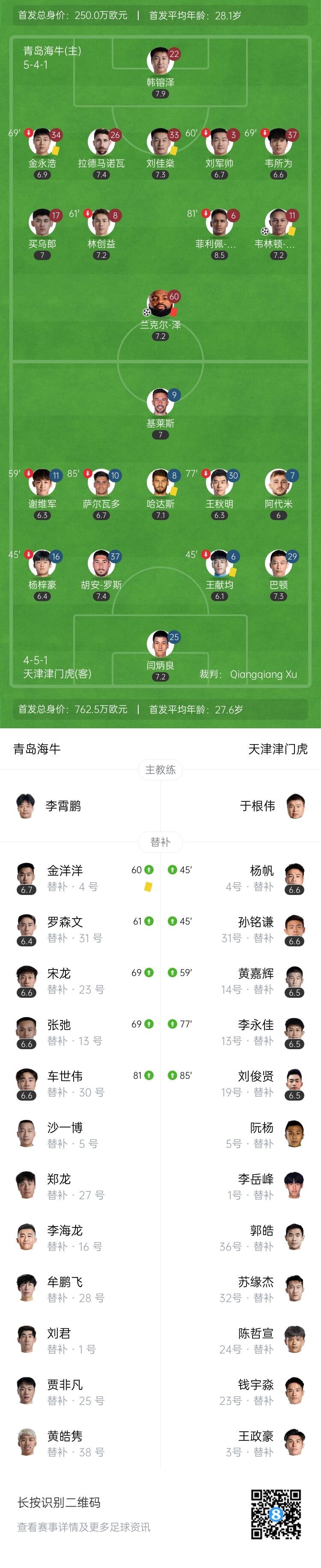 7月27日讯 北京时间7月27日晚上19:00,中超第18轮,青岛海牛坐镇青岛青春足球场迎战天津津门虎。上半场,兰克尔-泽破门。下半场,席尔瓦失良机,阿代米失点,兰克尔-泽染红,席尔瓦锁定胜局。全场结束,青岛海牛2-0天津津门虎。本场过后,青岛海牛积11分排名倒数第二,天津津门虎积28分排名第五。