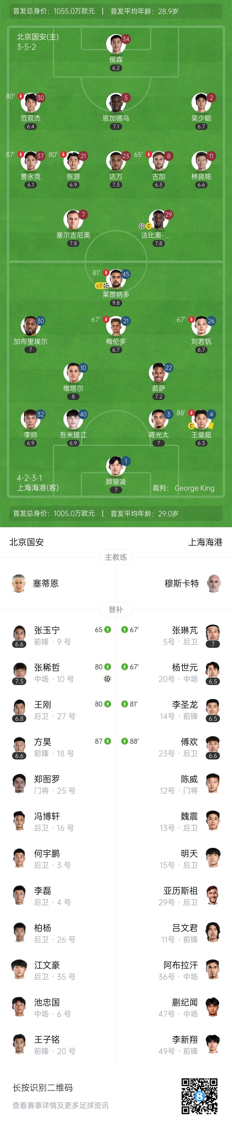 9月21日讯 北京时间9月21日晚上18:00,中超第25轮,北京国安坐镇北京工人体育场迎战上海海港。上半场,加布里埃尔失空门,莱昂纳多建功,加布里埃尔、法比奥进球无效,王燊超申领黄点套餐,法比奥再进两球戴帽。下半场,莱昂纳多双响,张稀哲扳回一球。全场结束,北京国安2-3上海海港。本场过后,上海海港积54分,先赛1场超成都蓉城1分登顶;北京国安积48分排名第四。
