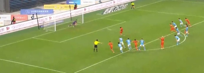 上半场补时7分钟,深圳新鹏城1-2云南玉昆。