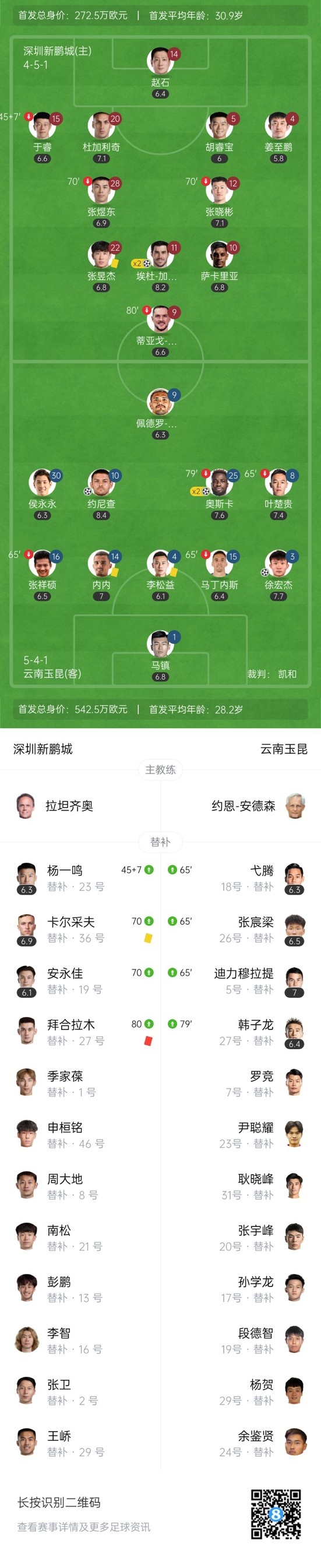 队史中超首胜!玉昆4-3新鹏城 奥斯卡首秀双响拜合拉木拳击染红