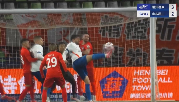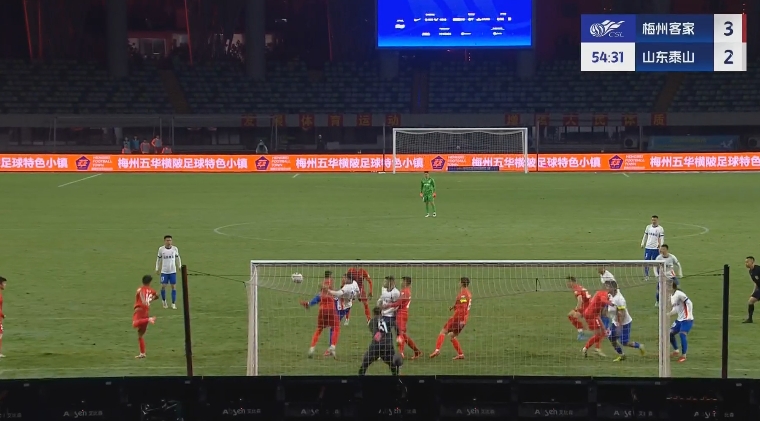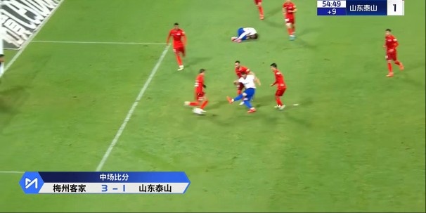 全场比赛结束,山东泰山客场4-3绝杀梅州客家。