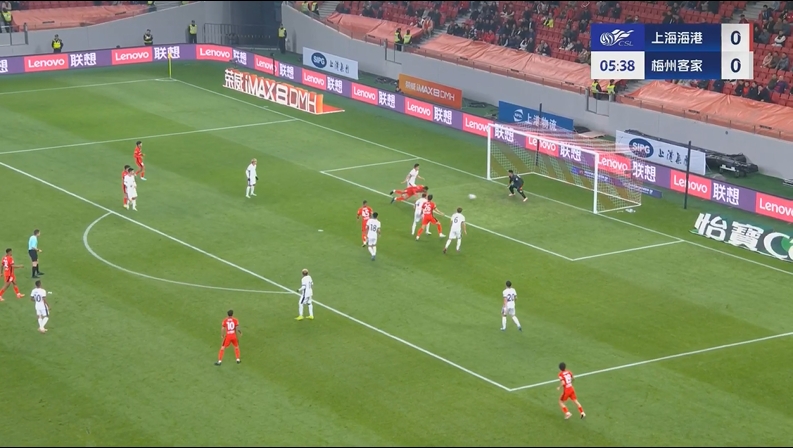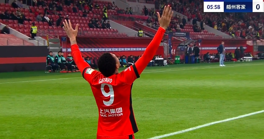 古斯塔沃破门,维塔尔助攻!海港领先!第6分钟,维塔尔45度角精准挑传到禁区,古斯塔沃鱼跃头球冲顶穿裆门将入网,上海海港1-0梅州客家!↓