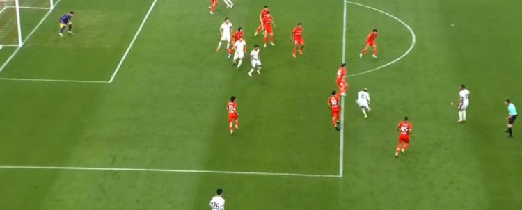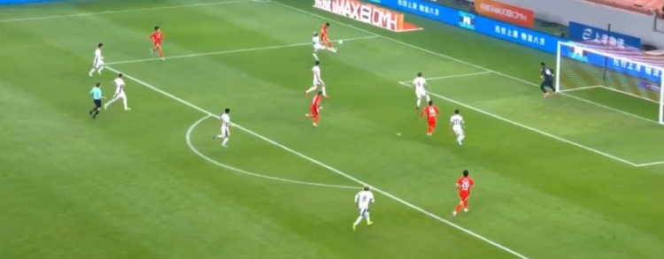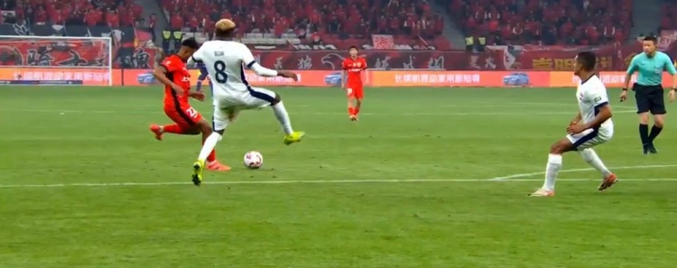 加布里埃尔失空门!第90+6分钟,莱昂纳多直塞,加布里埃尔过掉郭全博,但射门时过于犹豫,郭全博回追破坏。↓