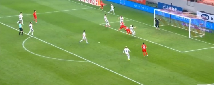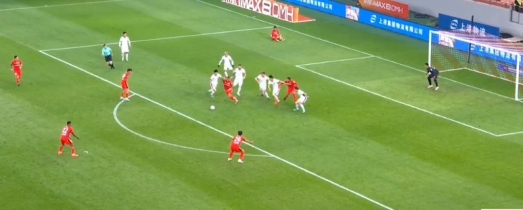 李圣龙进球越位!第73分钟,维塔尔主罚任意球开出被解围,李帅外围再远射,皮球打在李圣龙腿上折射破门,裁判吹罚越位进球无效。↓